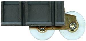 Adjustable sliding door carriage with dual steel rollers. Use 11-1650 as replacement.