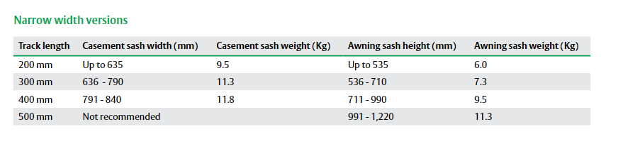 Narrow non-friction sash stay set. Suitable for timber & aluminium window application. Used with a chainwinder.