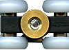 Overhead quad roller troller with quick release mounting bracket to suit Cowdroy Triumph sliding door track suite.