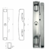Aluminium sliding door dead lock including outer pull, cylinders inside & out, plus striker and fixing screws.