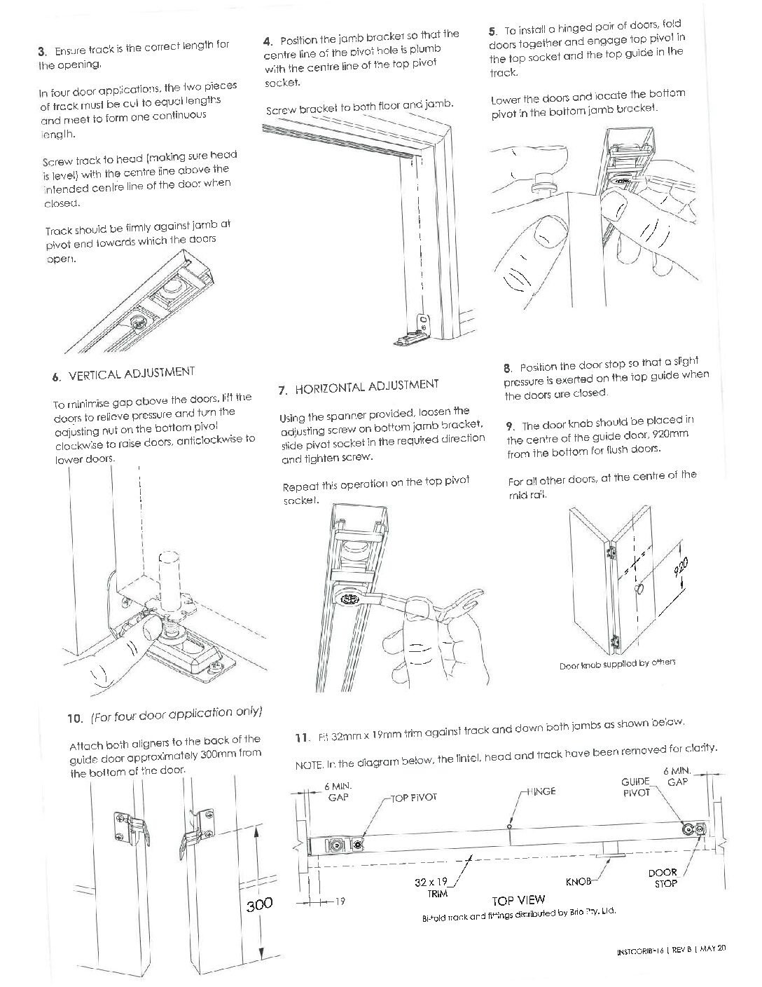 Corinthian bifold pack to suit 2 leaf set up. Comes with 2x 8-1905 top pivot/ guide, 1x 8-1910 bottom adjustable pivot, 1x 8-1911 bottom wall & floor mount jamb bracket, 1 adjustment spanner and fixing screws.